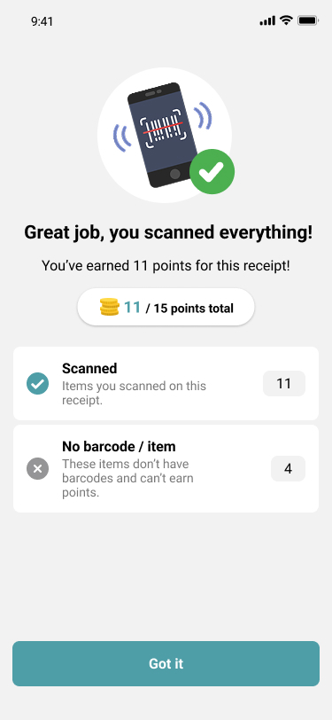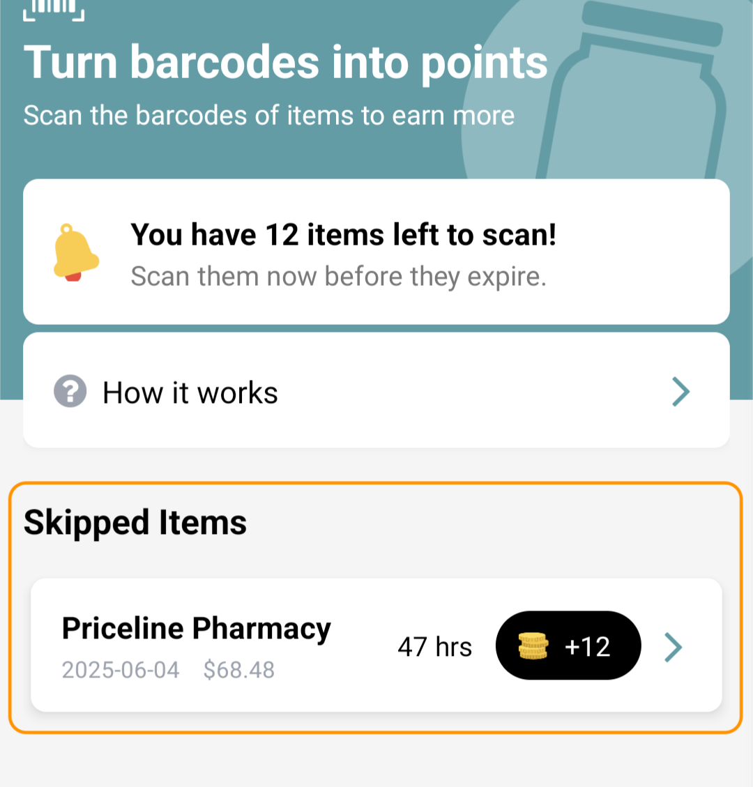 1. When you upload a receipt from supported retailers, you’ll be prompted to scan barcodes and earn extra points.