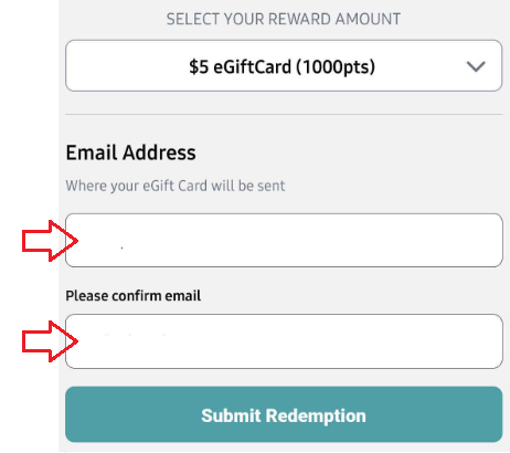 - When prompted, enter the email address where you want to receive the reward.