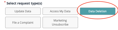 - Select “Data Deletion” as the request type.