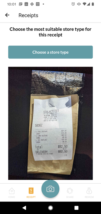 Revise o recibo e toque no botão "escolher tipo de loja"